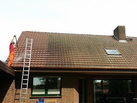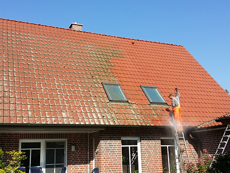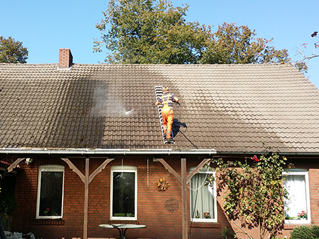 Die gesamte Dachfläche wird gründlich und umweltschonend gereinigt.